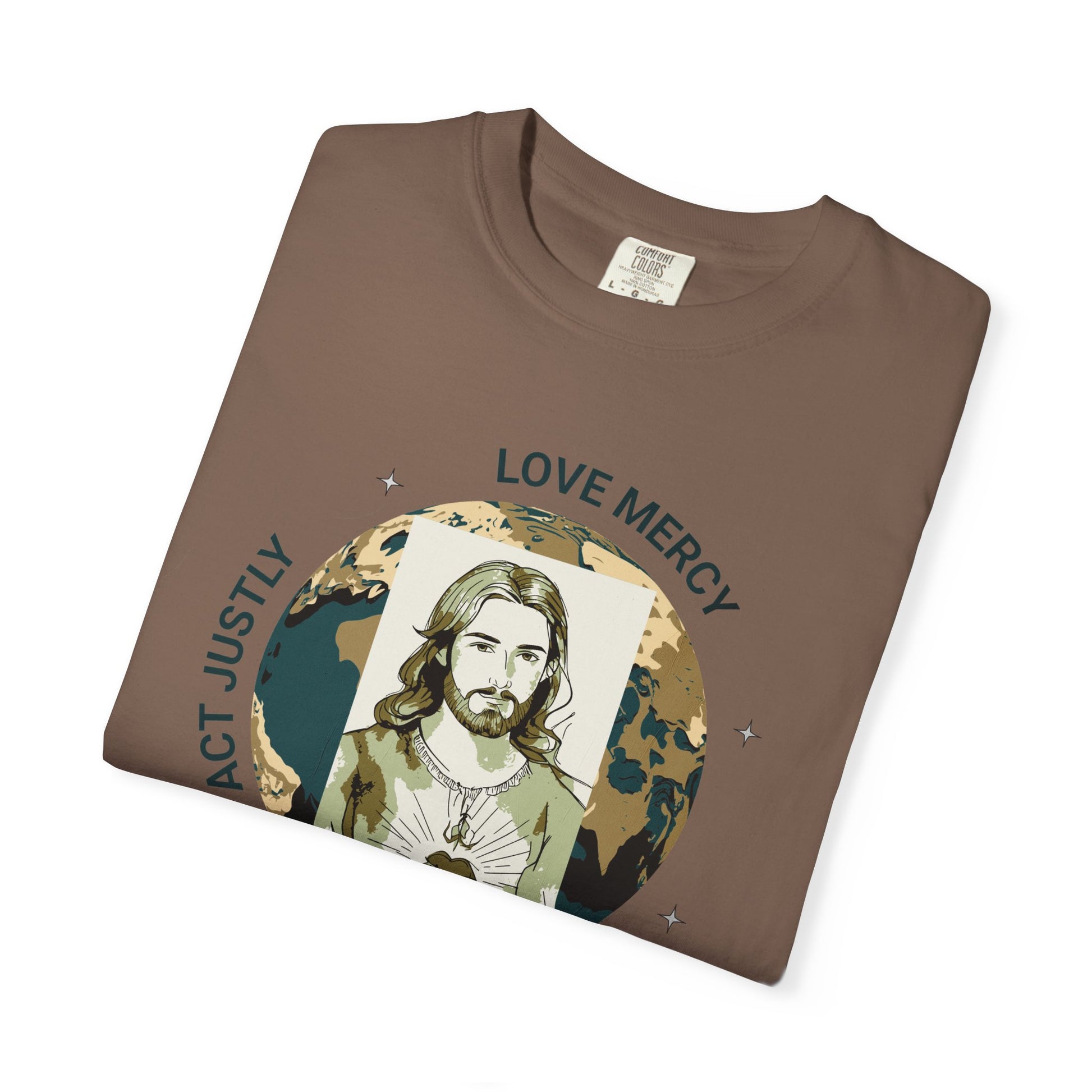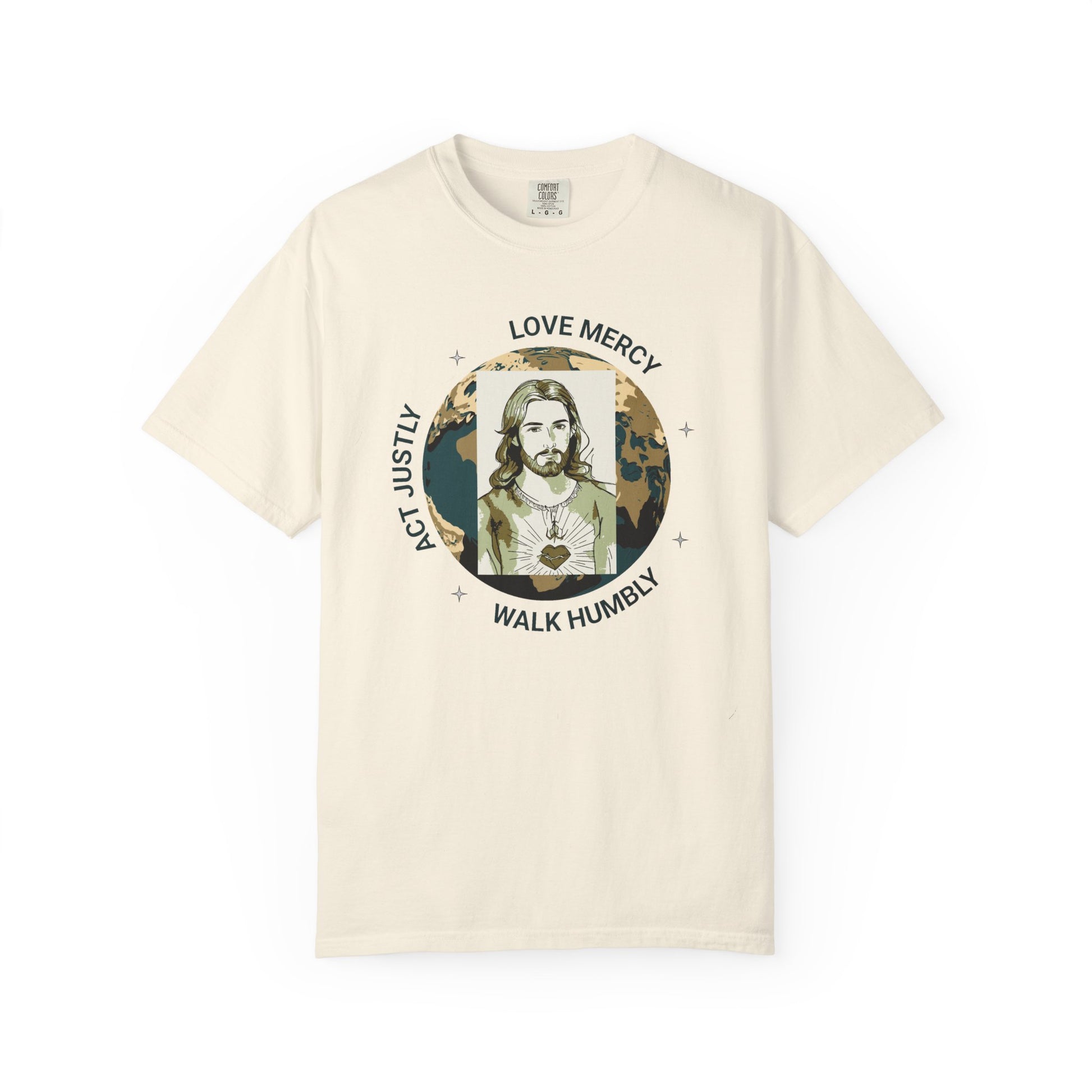 A great gift for your Christian friends and loved ones. The true message of Christ is one of Love, Mercy, Compassion, and Humility. As this shirt says we should all strive to Act Justly, Love Mercy, and Walk Humbly with our God.