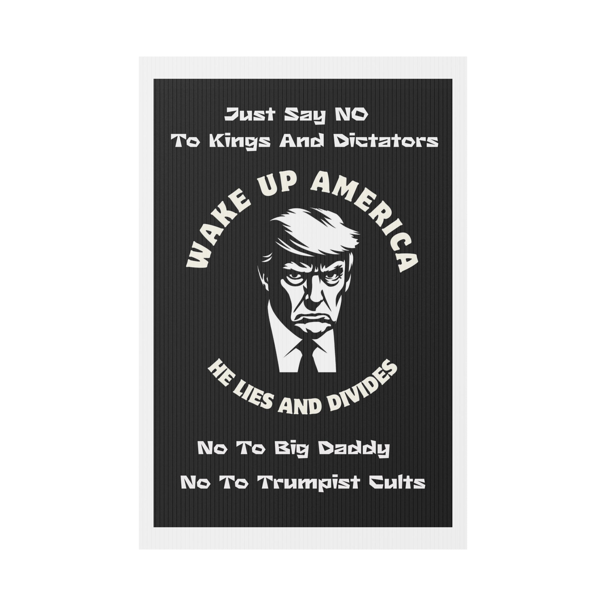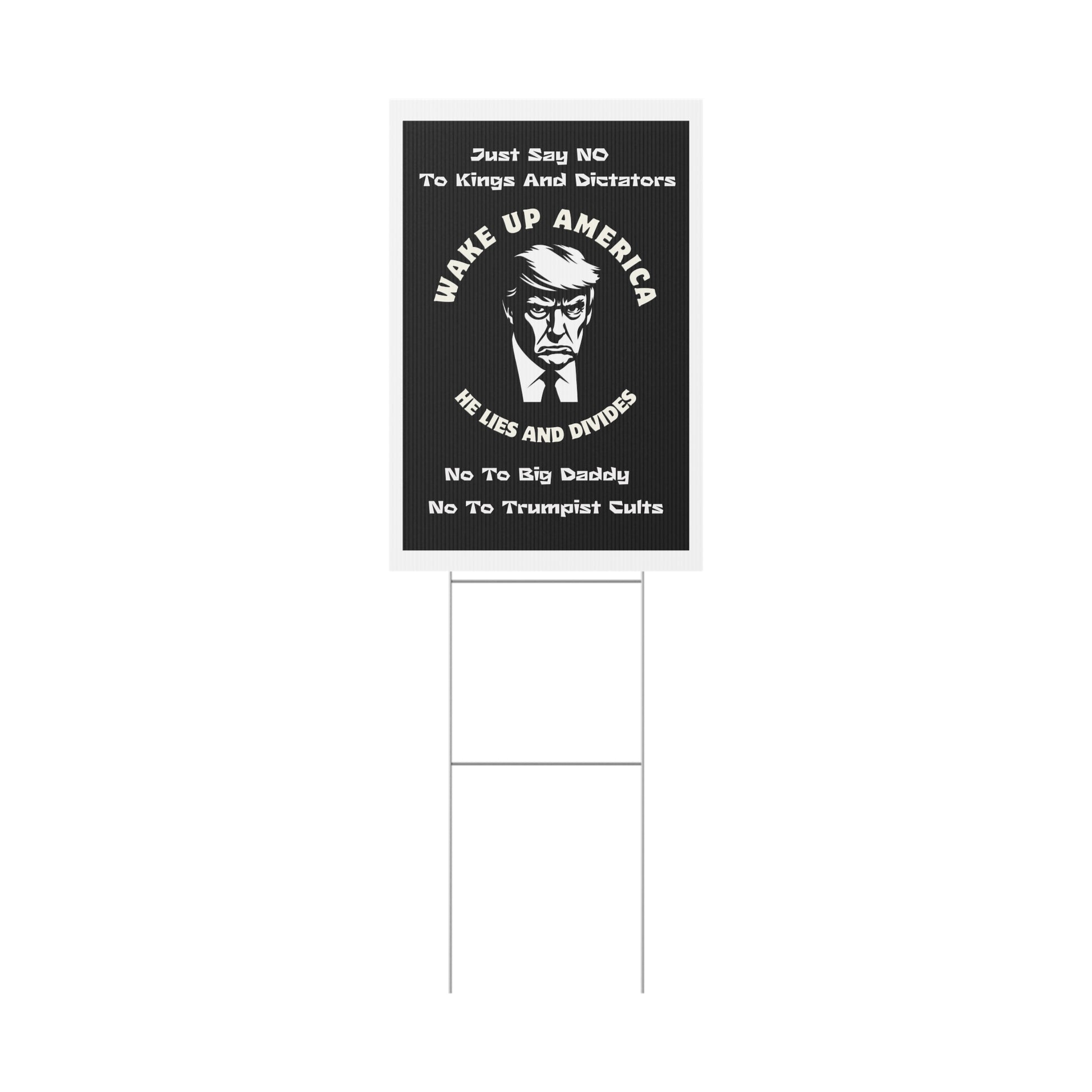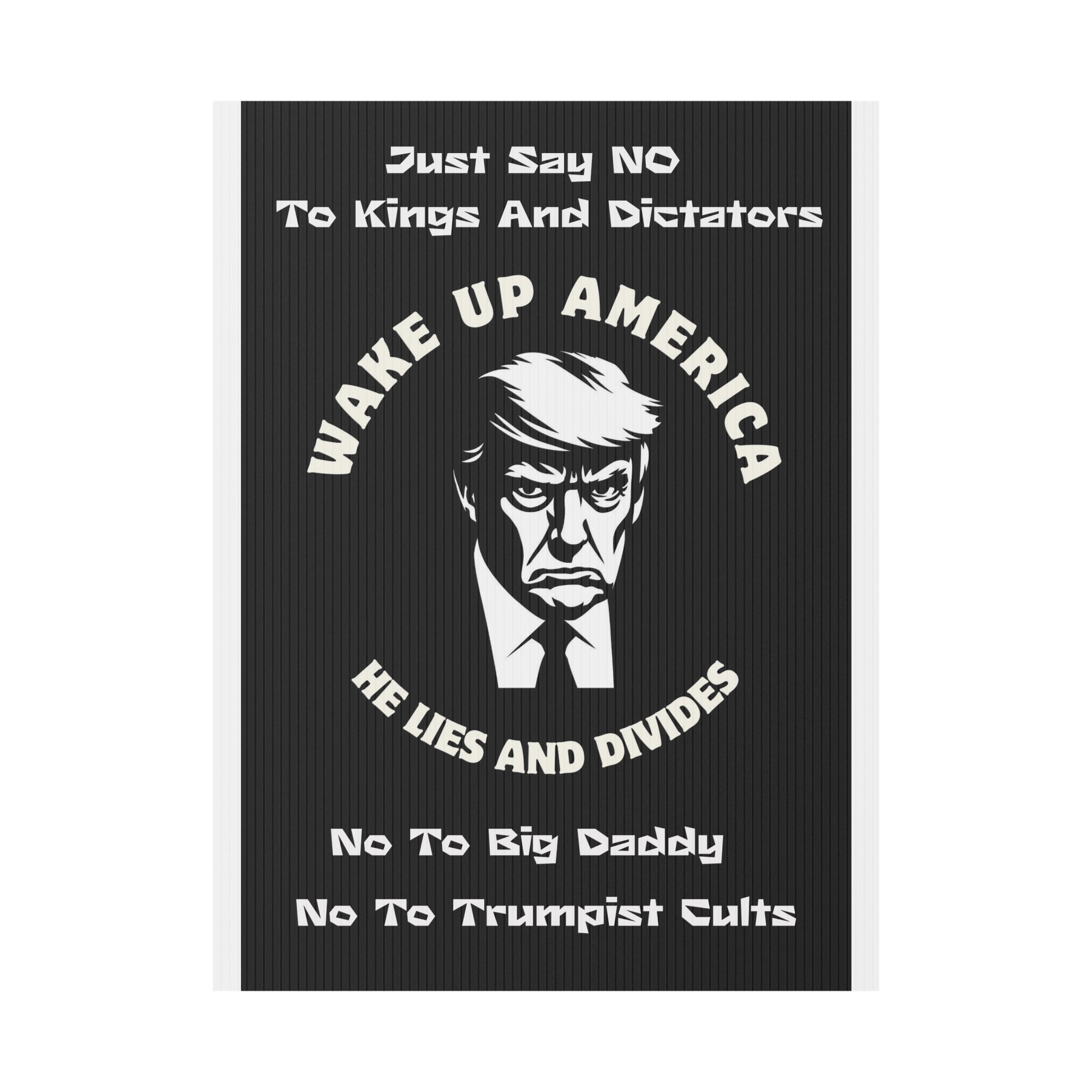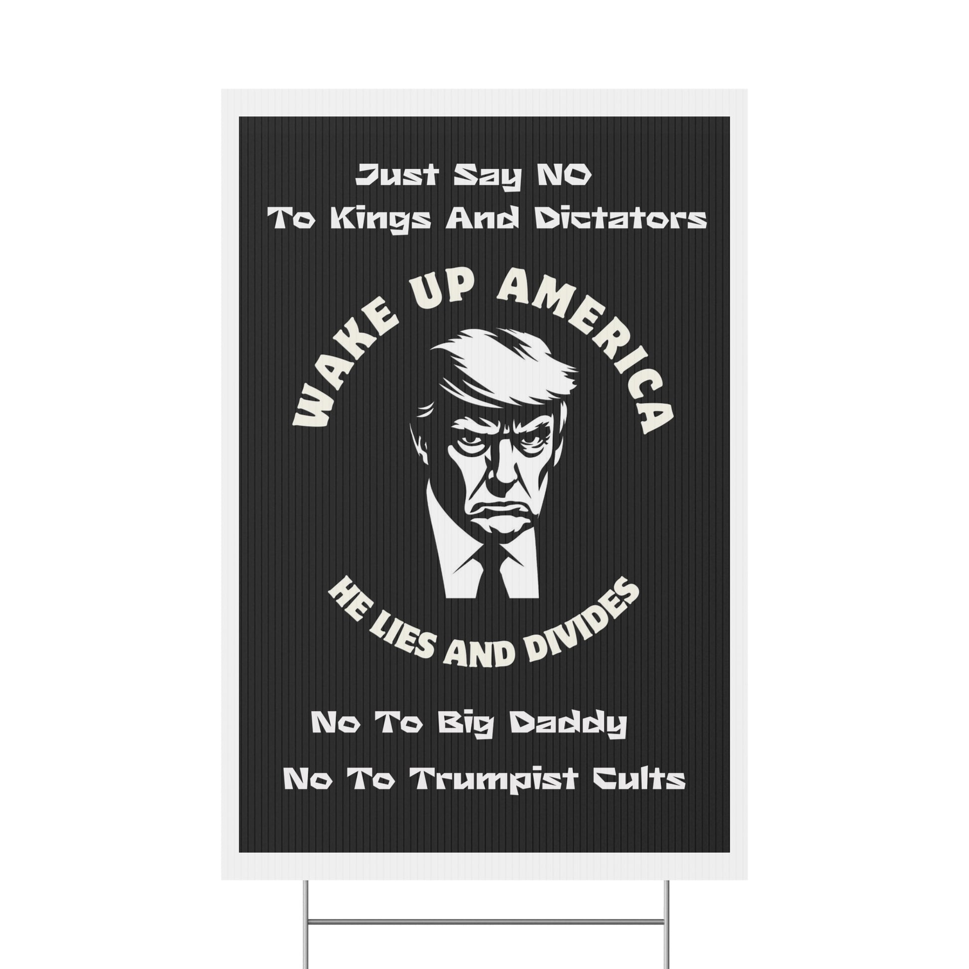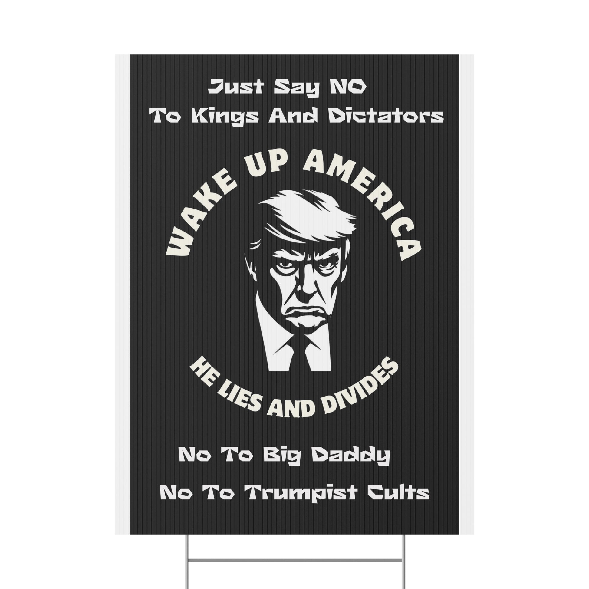 Anti-Trump Political Yard Sign - 'Wake Up America' No Kings Rally Sign